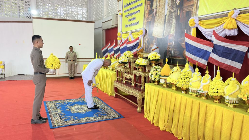 ร่วมพิธีถวายเครื่องราชสัการะทำบุญตักบาตร และวางพานพุ่ม ดอกไม้เนื่องใน วันคล้ายวันพระบรมราชสมภพพระบาทสมเด็จพระบรมชนกาธิเบศร
